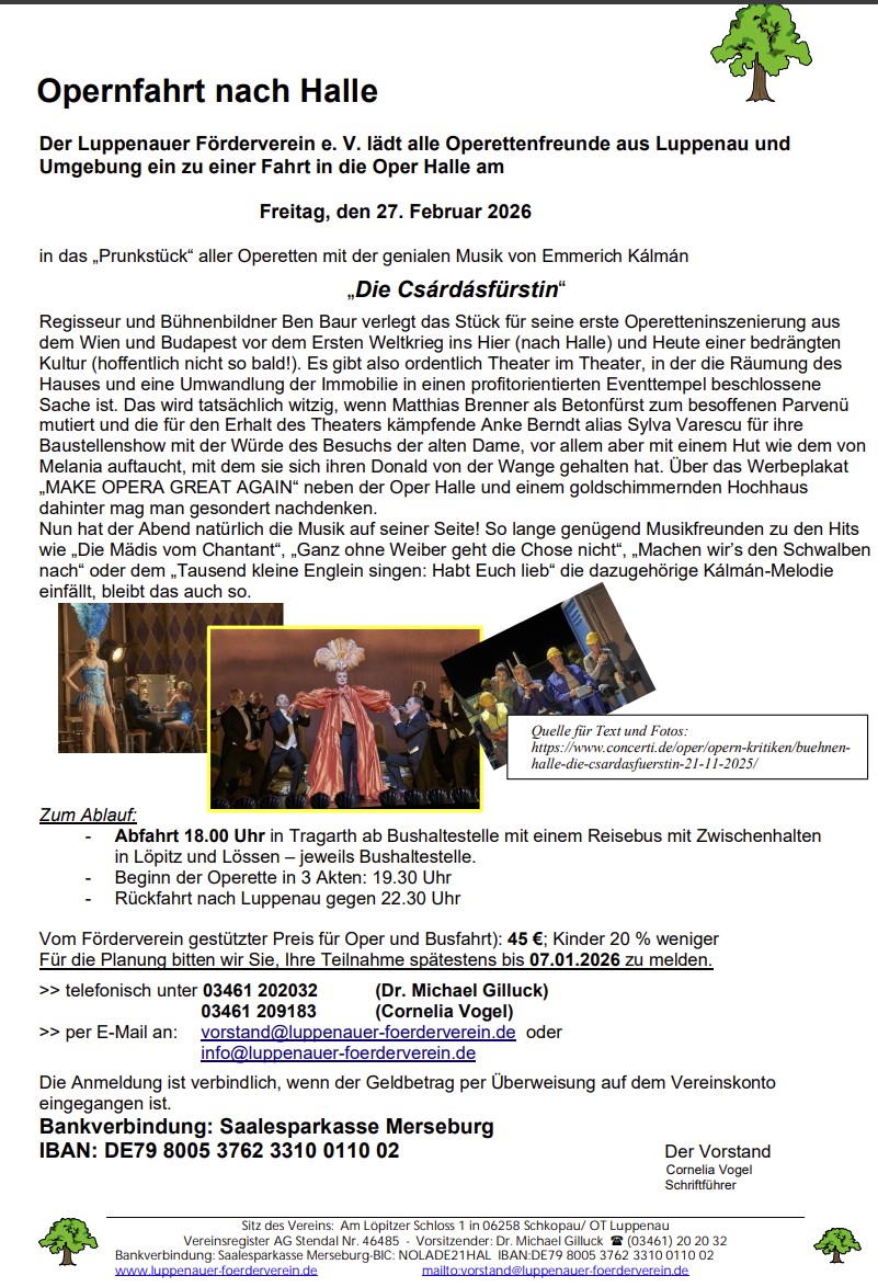 Der Luppenauer Förderverein e. V. lädt alle Operettenfreunde aus Luppenau und